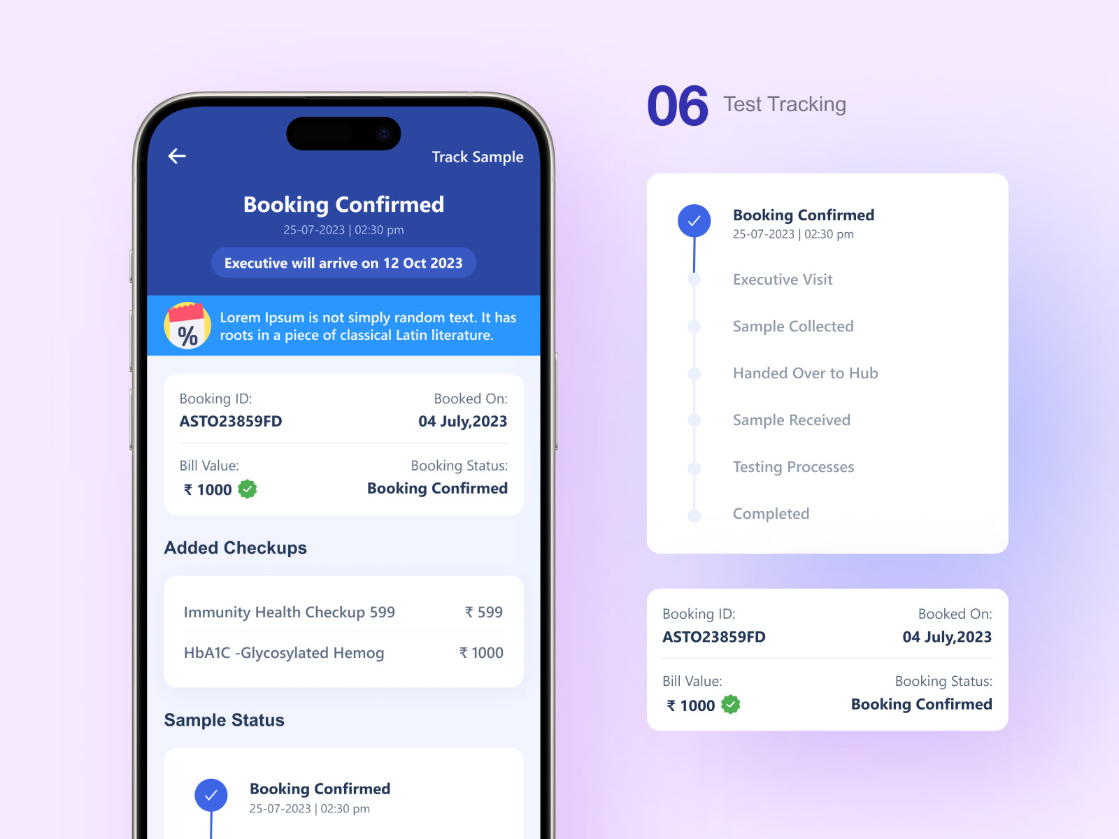 We designed a dedicated "Test Tracking Screen." This feature serves as a centralized hub, offering users a seamless and transparent way to monitor and manage every stage of their diagnostic testing process.