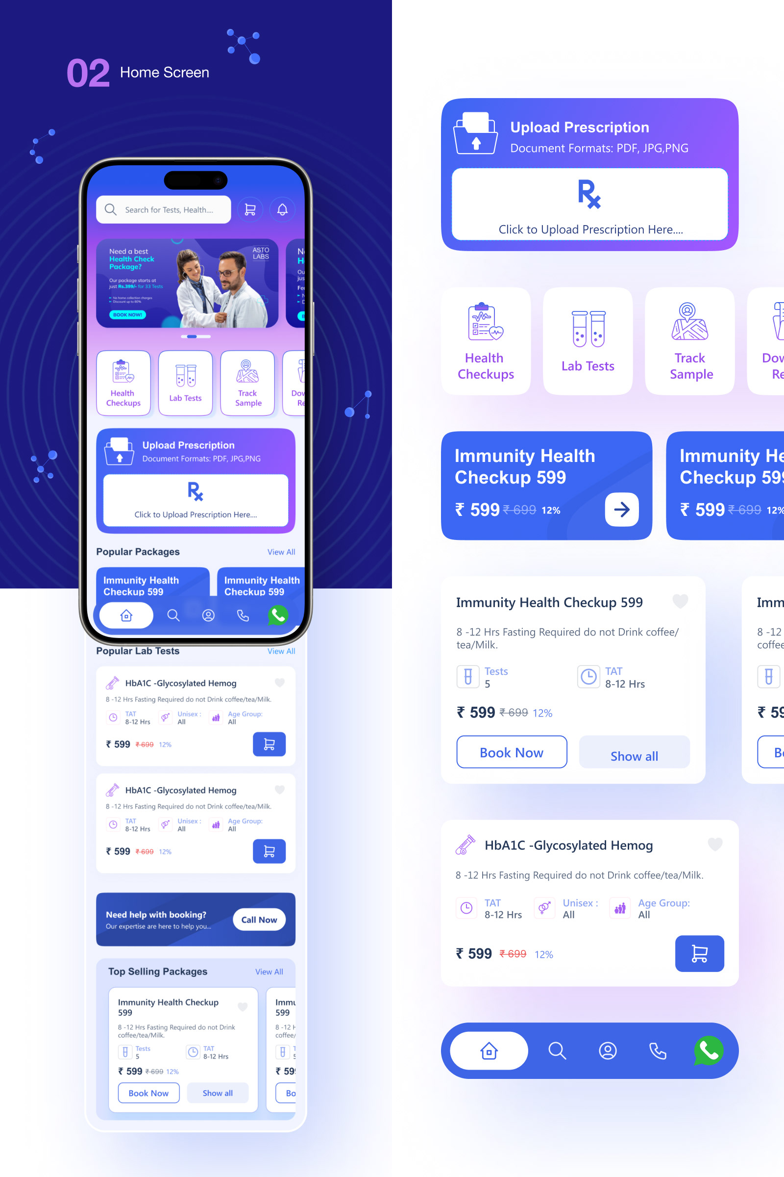 Top Tests Showcase: A dynamically curated section on the home screen highlights the most popular or recommended tests. This not only assists users who may be unsure about which tests to book but also provides a quick overview of the app's offerings.
