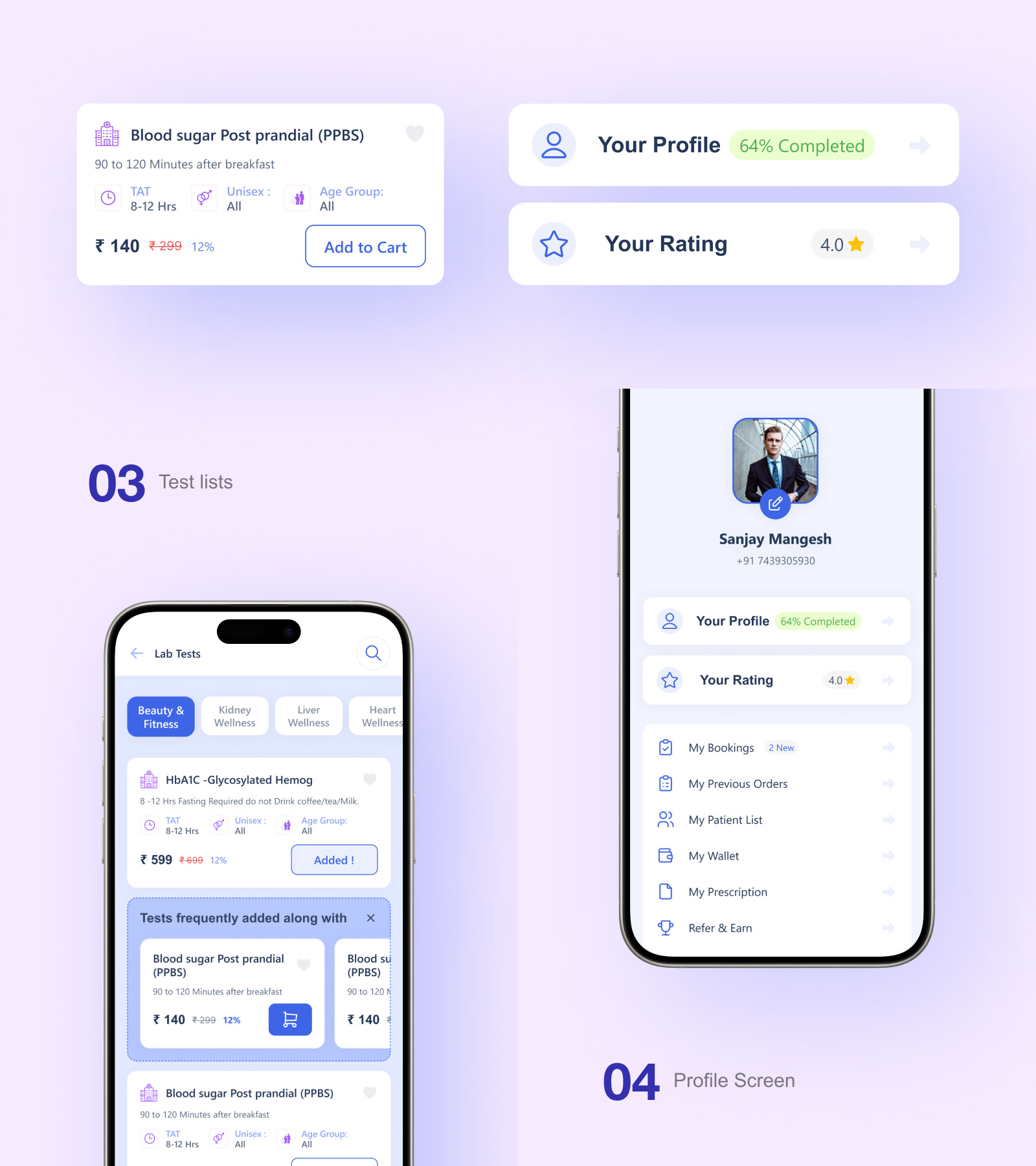The "Test Lists Screen" is a pivotal component designed to empower users with a comprehensive view of available diagnostic tests. This screen serves as a centralized hub, allowing users to explore and select specific tests based on their health needs.