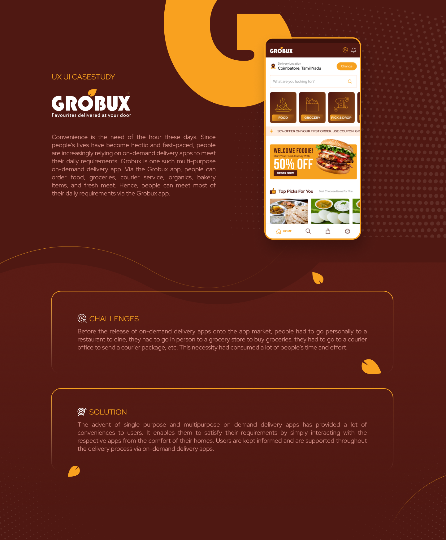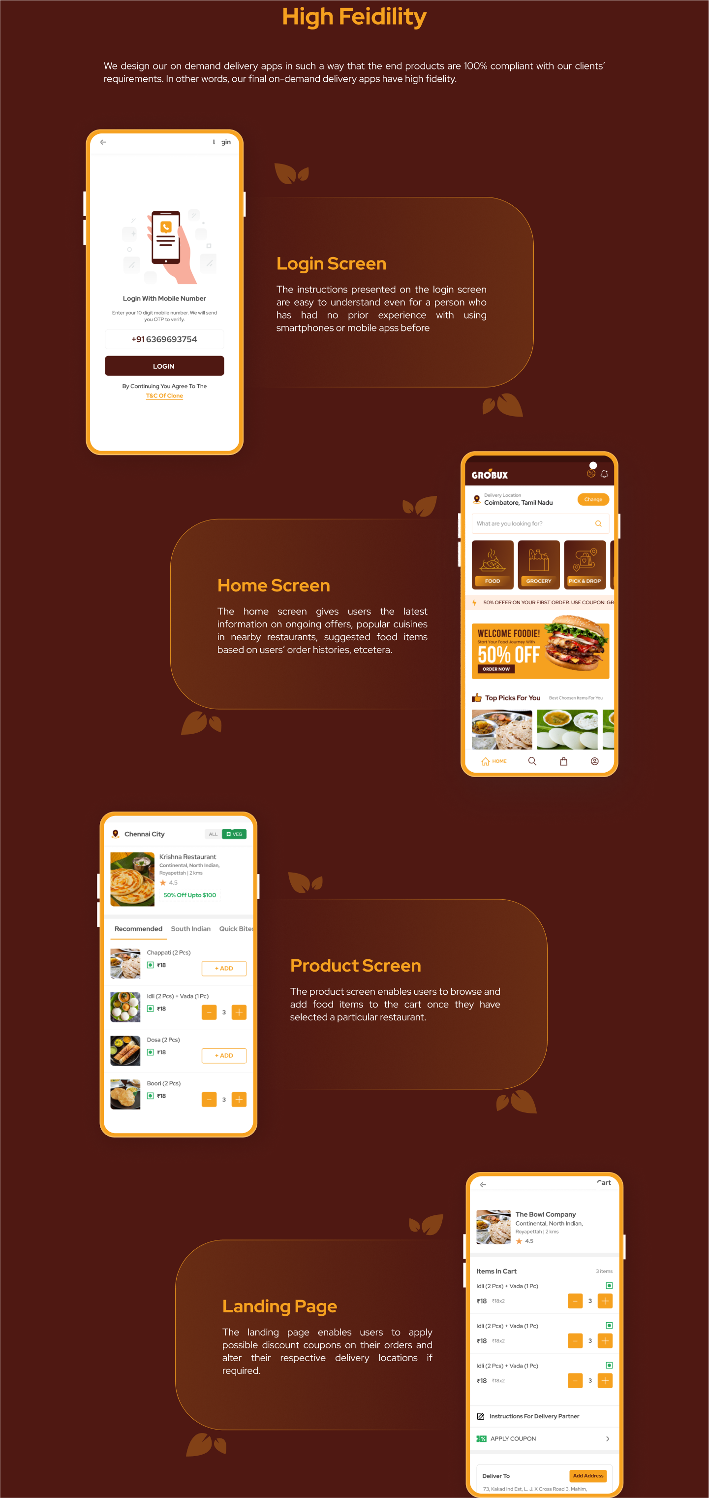 Grobux is our most recent successfully completed app development project. Grobux is a multi-purpose on-demand delivery app. Via the app, people can order food, groceries, courier service, and organic products. Hence, most of the common man’s daily requirements can be met via the app. Developing a cross-platform, multi-purpose, and robust on-demand delivery app wasn’t easy for us. We had to make the app as unique and flexible as possible. In order to do that we had to think outside the box and come up with some unique design and marketing solutions, which we will mention clearly in the coming sections. By sending surveys to people, we first found out what users expect the most from on-demand delivery apps, and we designed the Grobux app to effectively address those pain points.